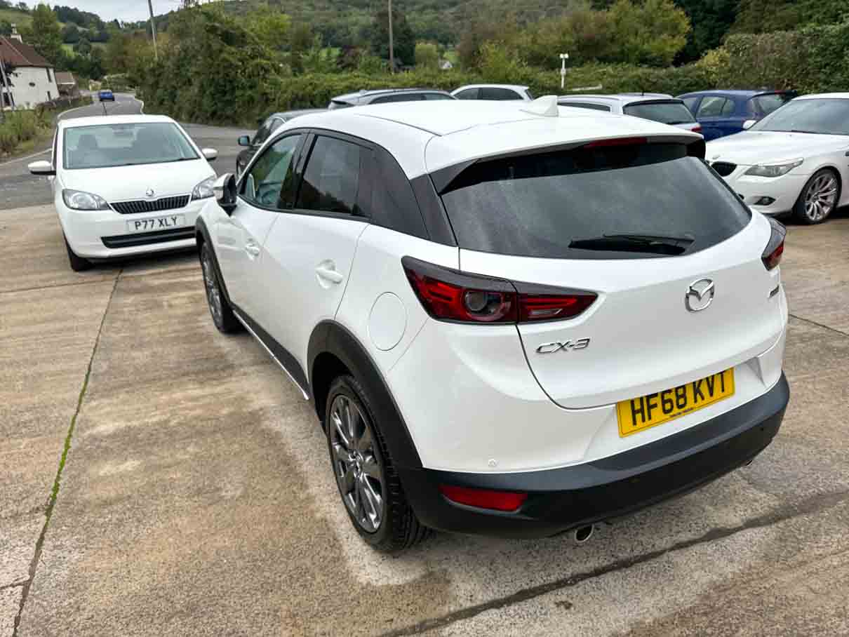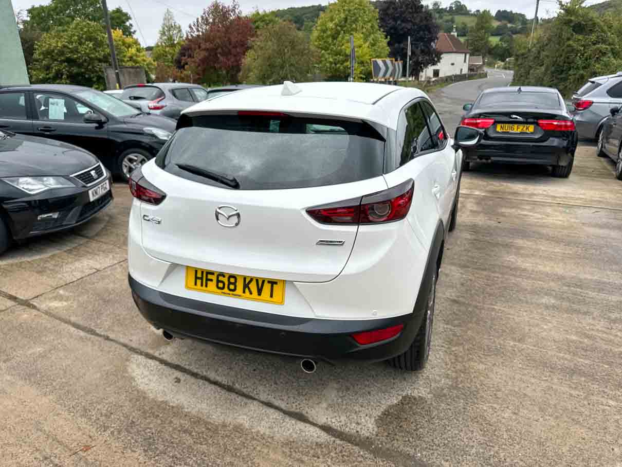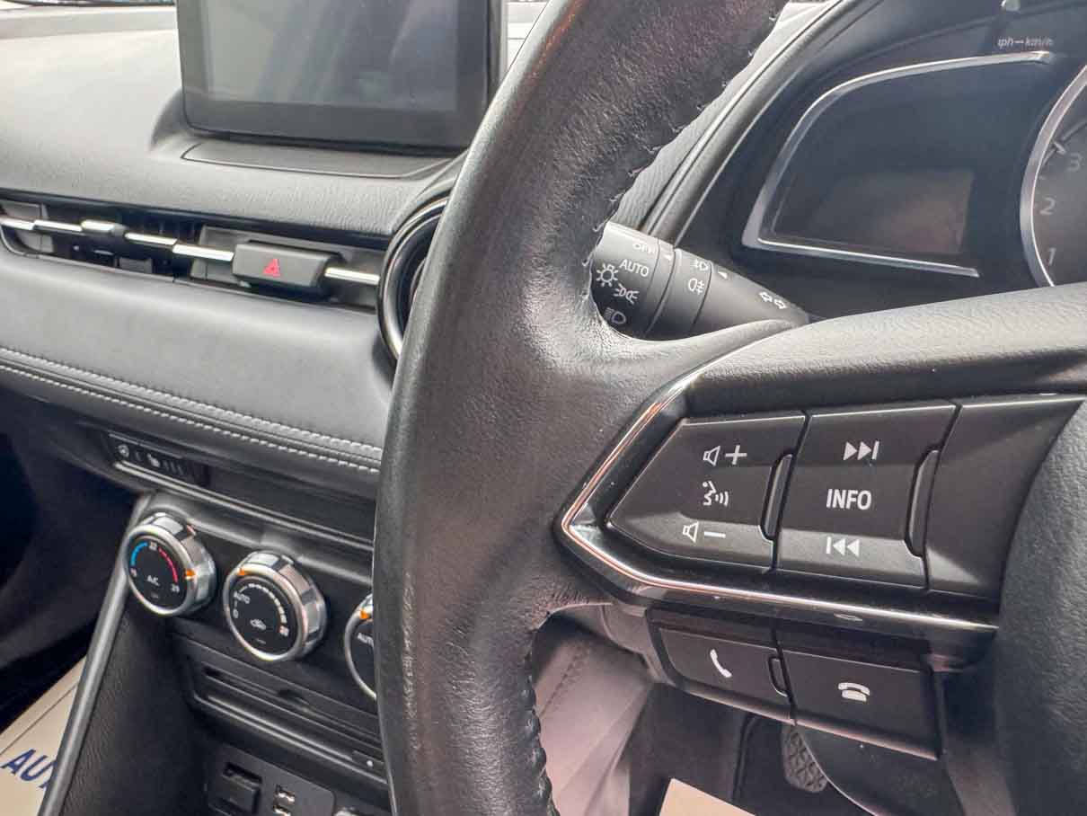 This 2018 Mazda CX-3 SKYACTIV-G Sport Nav+ boasts a full service history and a clear vehicle history check, offering you peace of mind. As a Euro 6 compliant model, it features a responsive 2.0 litre petrol engine and comes with a 3 month warranty for added security. The Sport Nav+ trim includes a comprehensive Safety Pack with Blind Spot Assistance and LED headlights, alongside dusk sensing automatic headlights for enhanced visibility. Manoeuvring is made easier with a reversing camera and front parking sensors, while the steering wheel mounted audio and Bluetooth controls allow for seamless connectivity.