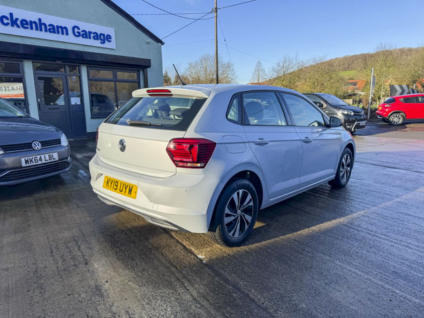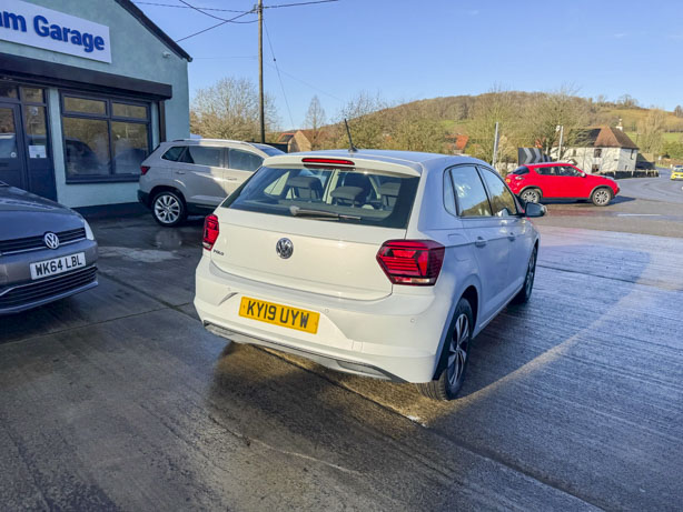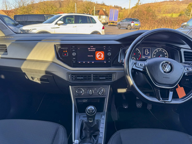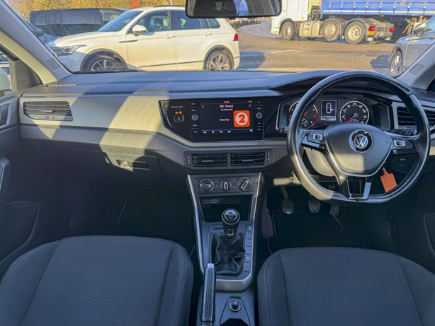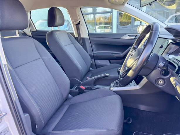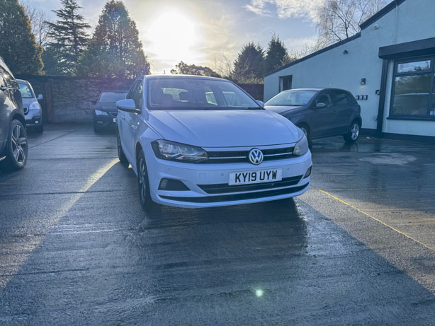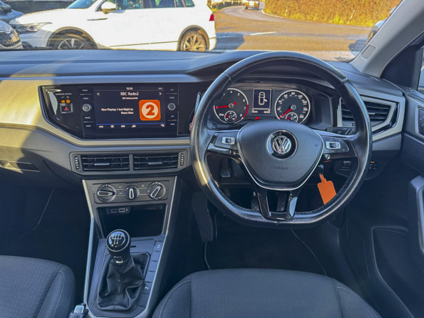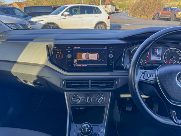 This 2019 Volkswagen Polo TSI SE boasts a full service history, ensuring its excellent provenance. This particular model features a 1.0 litre Euro 6 petrol engine and comes with a 3 month warranty for your peace of mind. The SE trim level includes 15 inch Seyne Black Diamond Turned alloy wheels, a Convenience Pack with automatic headlights, and a Light and Sight Pack. For ease of parking, it is equipped with front and rear parking sensors and Park Assist.